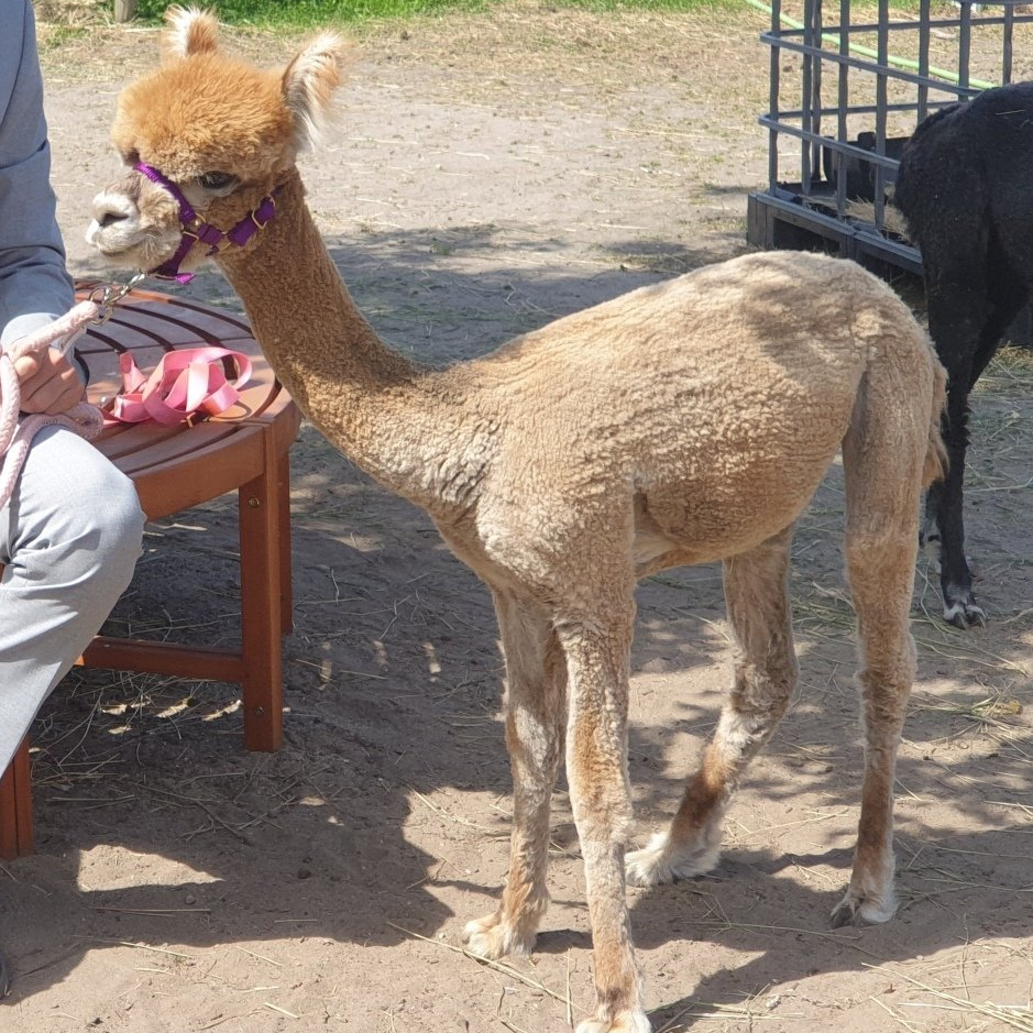Sie hieß ursprünglich INTI Sunny. Sie ist im Mai 2019 geboren und in einer großem Herde von Alpakas und Lamas aufgewachsen. Seit April 2020 ist sie Teil der Herde. Sie ist vornehm zurückhaltend, sehr charakterstark und gibt gern den Ton an.