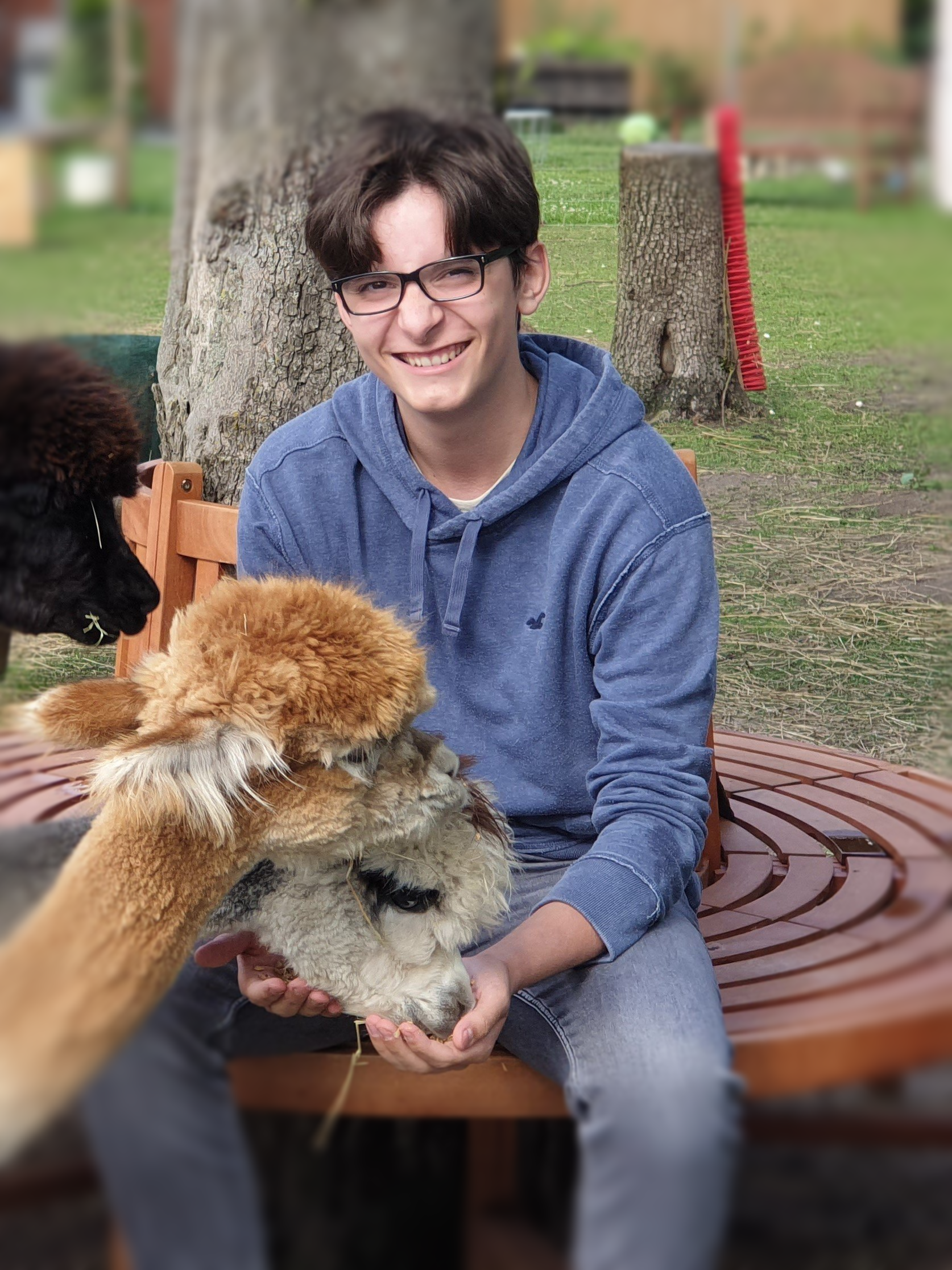 Connor unterstützt uns bei der Ausbildung der Alpakas und packt bei allen Gelegenheiten ordentlich mit an.